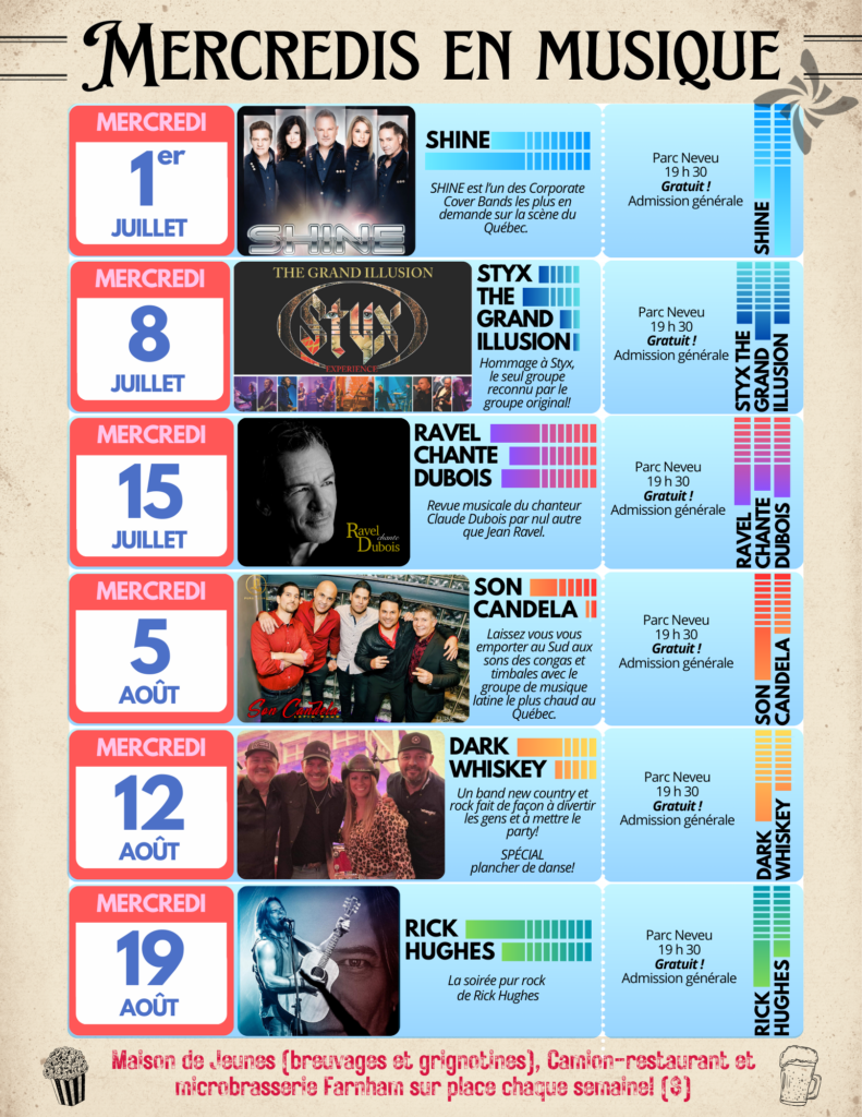 La programmation culturelle 2026 sera dévoilée sous peu. Abonnez-vous à notre INFOLETTRE courriel et suivez notre page FACEBOOK pour ne rien manquer!