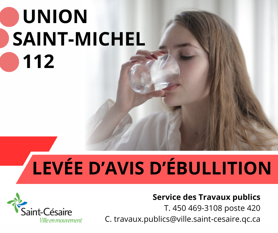 À la suite de l’avis d’ébullition préventif émis 8 janvier dernier pour les résidences situées dans les secteurs mentionnés plus haut, il n’est plus nécessaire de faire bouillir votre eau avant de la consommer à partir d’aujourd’hui.